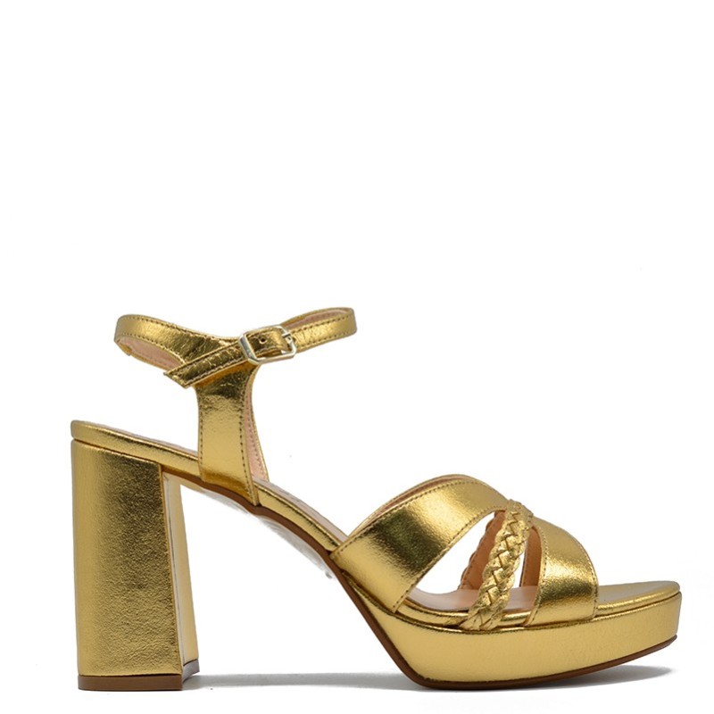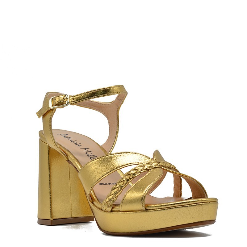 Patrizia Miller γυναικείο δερμάτινο πέδιλο σε χρυσό με χοντρό τακούνι.