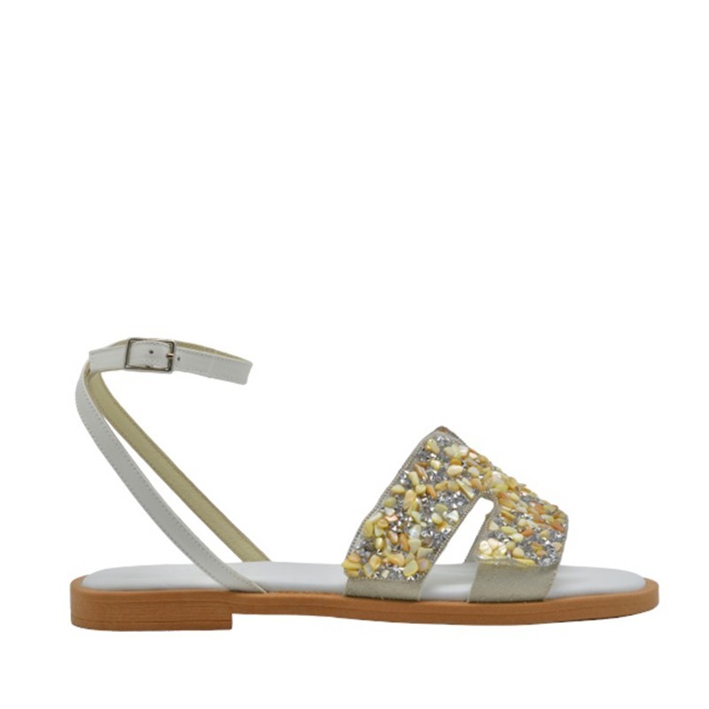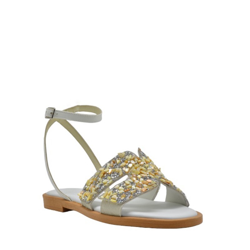Bacali collection γυναικείο δερμάτινο πέδιλο λευκό με πέτρες.
