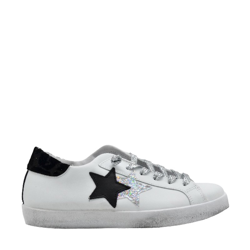 2STAR COLLECTION γυναικείο δερμάτινο sneaker λευκό με κορδόνια.