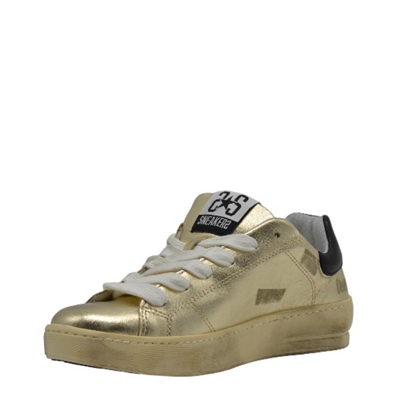 2STAR COLLECTION γυναικείο δερμάτινο sneaker χρυσό/μαύρο με κορδόνια.