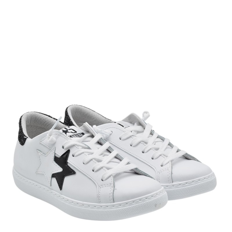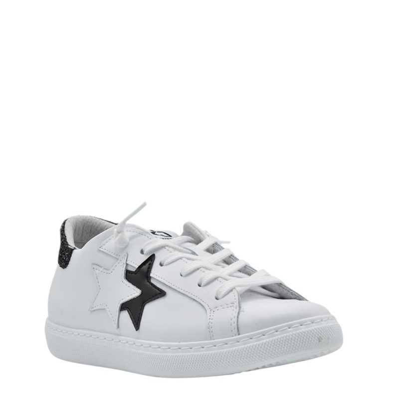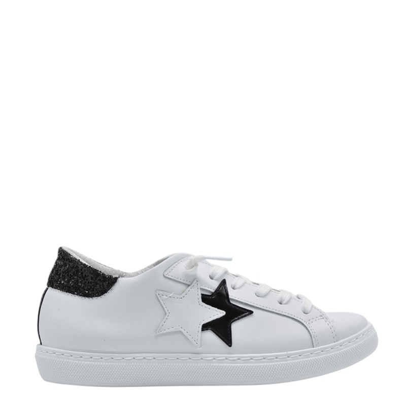 2Star Collection γυναικείο δερμάτινο sneaker σε λευκό με μαύρο.