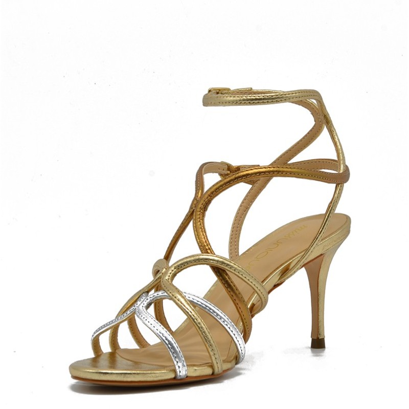 Miss Unique women's leather sandal gold-silver-bronze.
