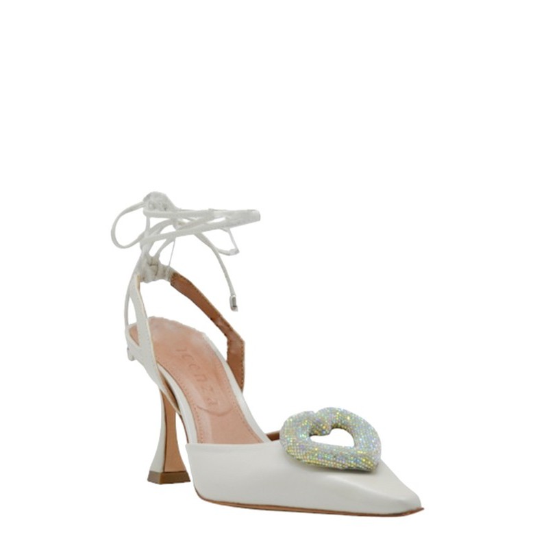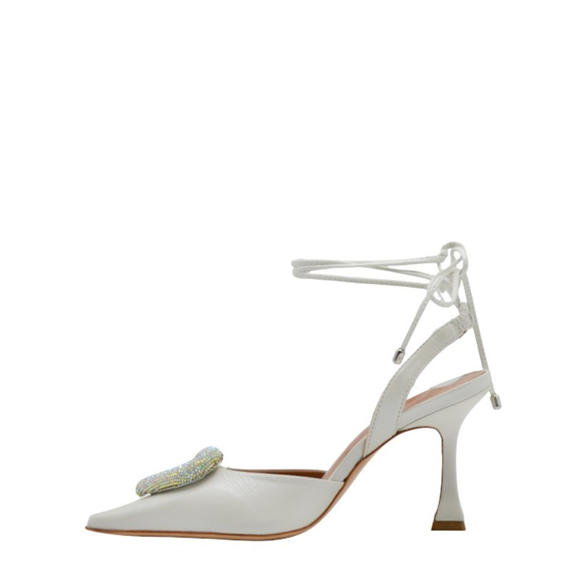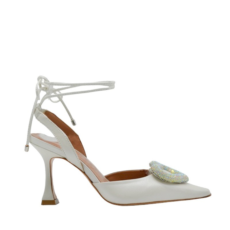 Vicenza women's leather pump with iridescent heart. Removable laces.