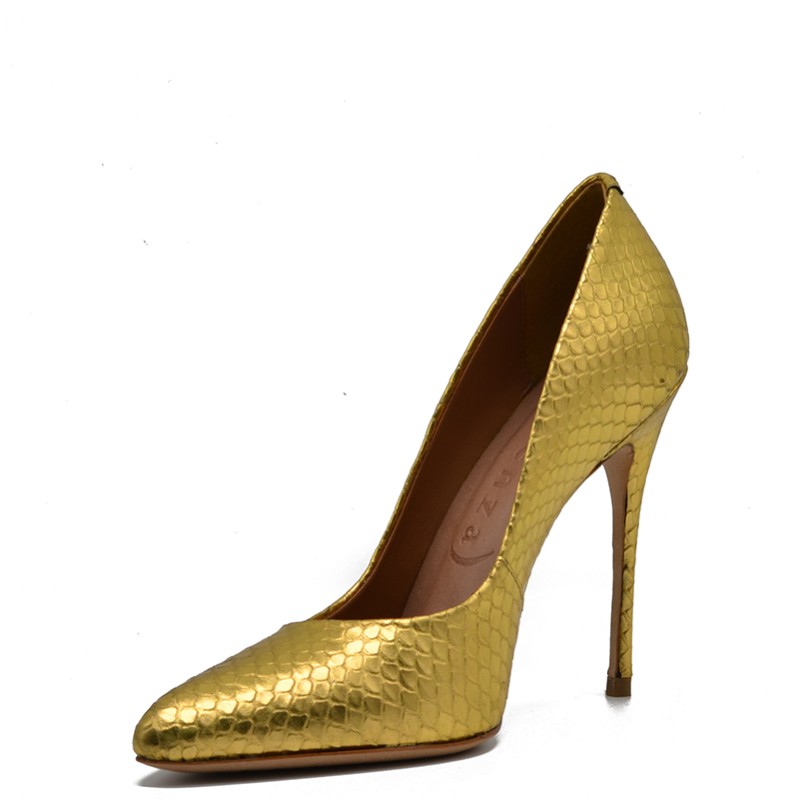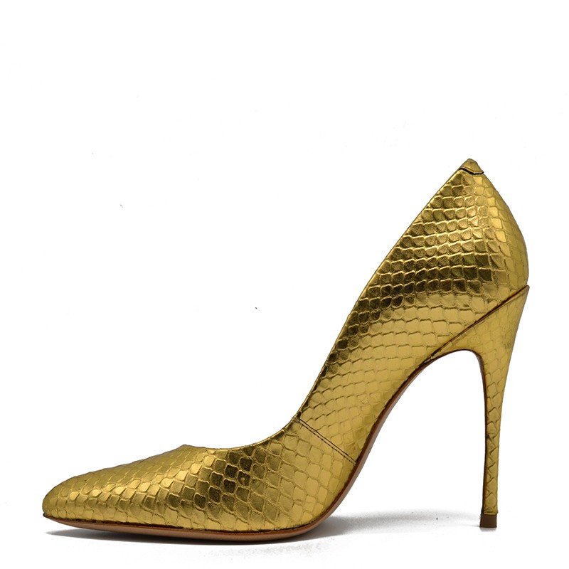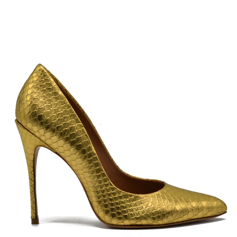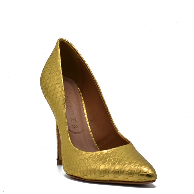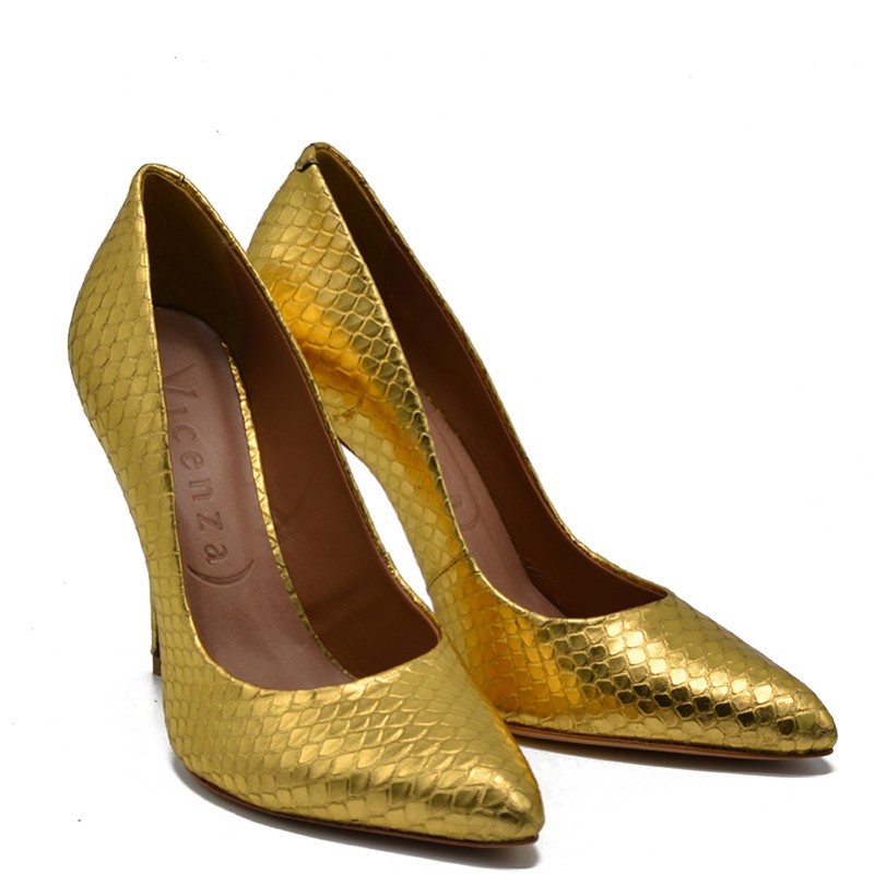 Vicenza women's leather pump in gold snake effect.