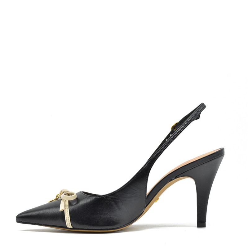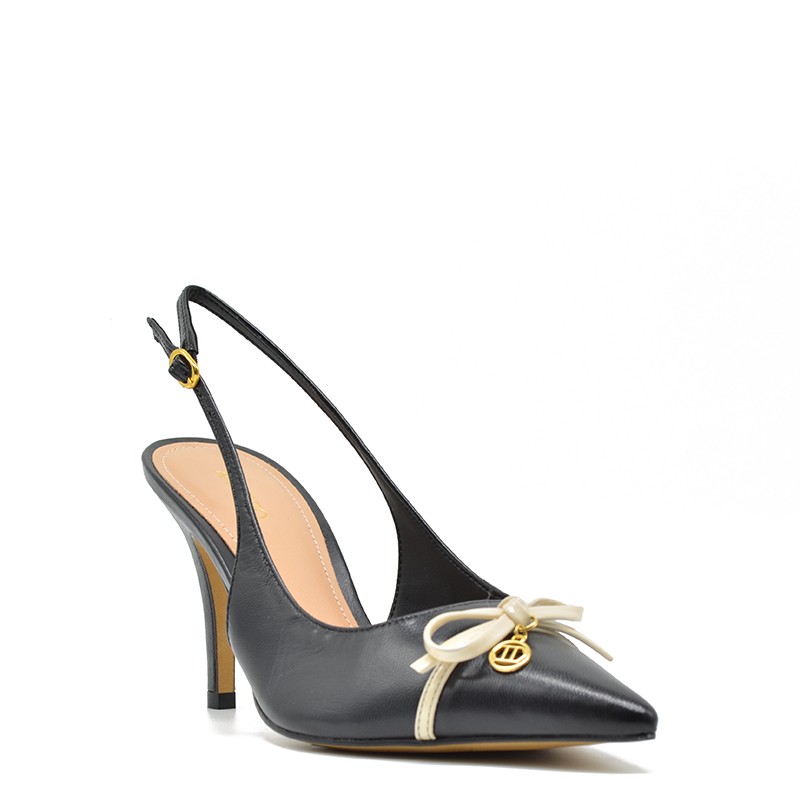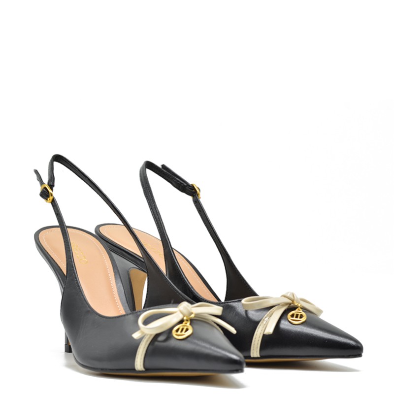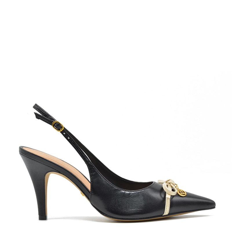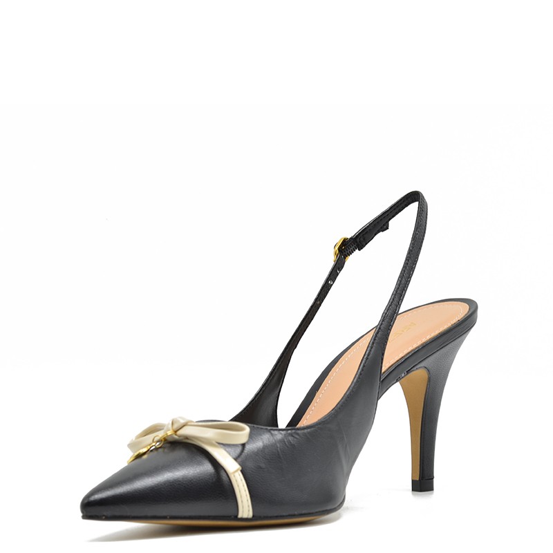 Arezzo women's pump in black leather and a bow.