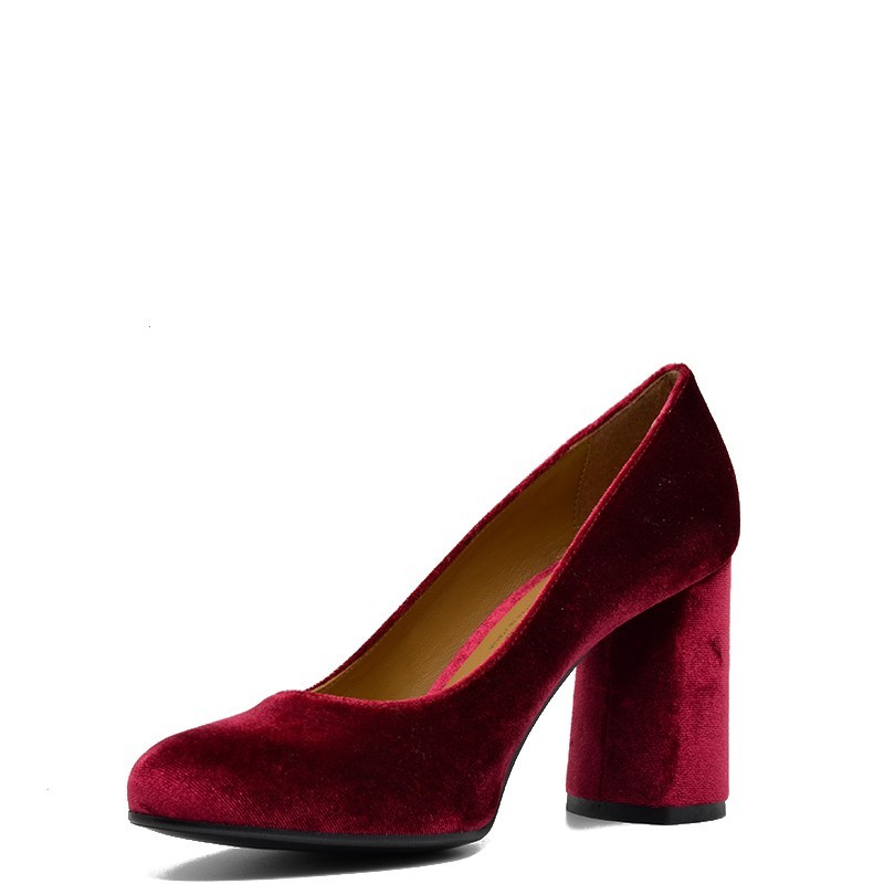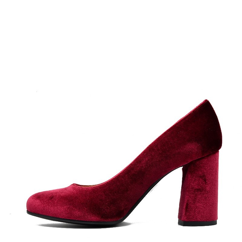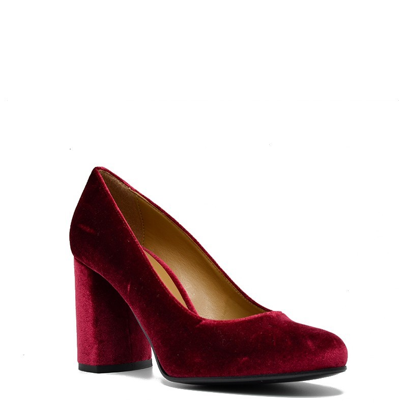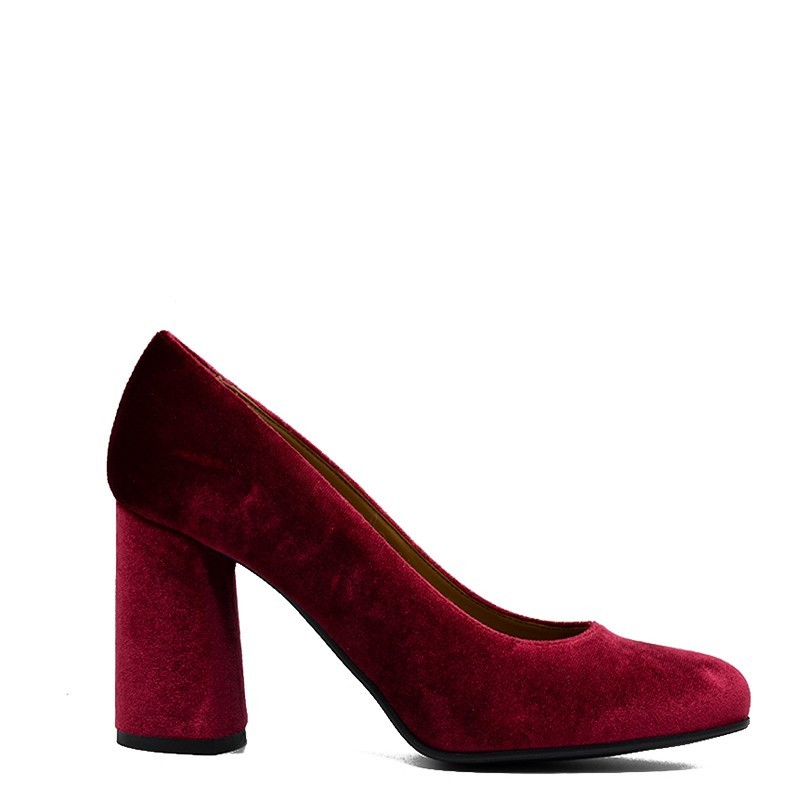 4Ever Green γυναικεία γόβα σε μπορντό βελούδο με χοντρό τακούνι